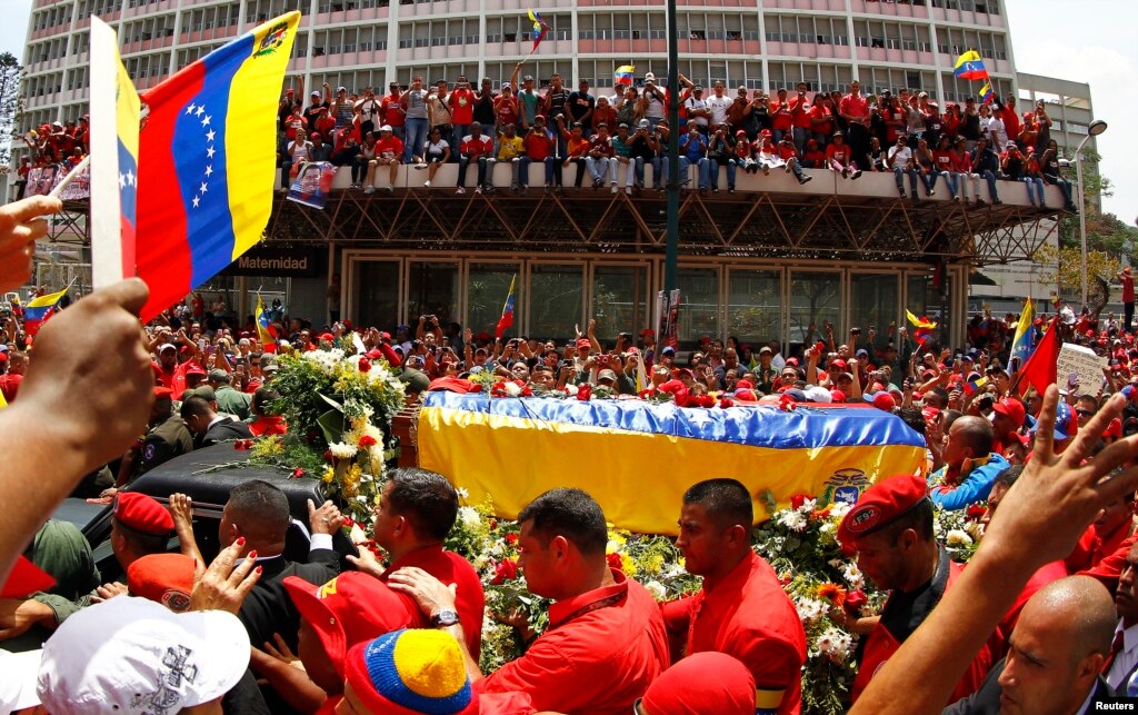 ေသာၾကာေန႔မွာလုပ္မယ့္ ႏိုင္ငံေတာ္ စ်ာပနအခမ္းအနားကုိ တက္ ေရာက္ၾကဖုိ႔ ကြယ္လြန္သူ သမၼတနဲ႔ အရင္းႏွီးဆံုး ႏိုင္ငံ့ ေခါင္းေဆာင္ေတြ ျဖစ္ၾကတဲ့ ဘိုလီးဗီးယား သမၼတ အီဗို မိုရဲလဲစ္ (Evo Morales)၊ အာဂ်င္တီးနား သမၼတ ခရစၥတီးနား ဖာနန္းဒဇ္ (Cristina Fernandez) နဲ႔ ဥ႐ုေဂြး သမၼတ ဟိုေဆး မူဟီးကား (Jose Mujica) တို႔ဟာ ဗုဒၶဟူးေန႔ထဲက ဗင္နီဇြဲလားႏိုင္ငံမွာ ေရာက္ ရွိေနၾကပါတယ္။